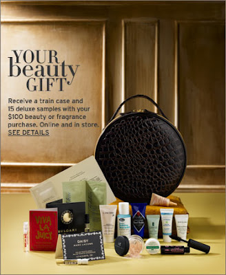 With any beauty or fragrance order of $100 or more customers receive a unique croc-embossed train case filled with 15 deluxe beauty samples at Nordstrom. Exp. 10/20/08